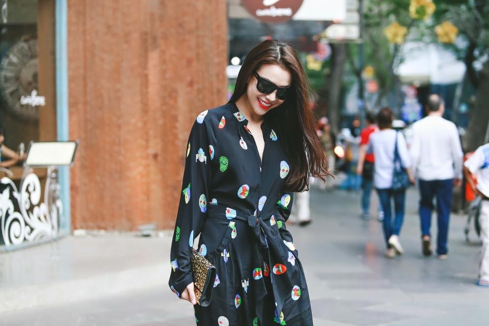 | Mẫu váy sơ mi họa tiết của Trà Ngọc Hằng khiến nhiều tín đồ thời trang phải xuýt xoa. |