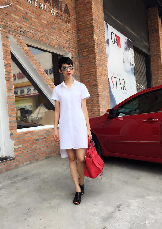 | Minh Hằng cũng kịp cập nhật mẫu váy sơ mi suông trẻ trung, thanh lịch. |