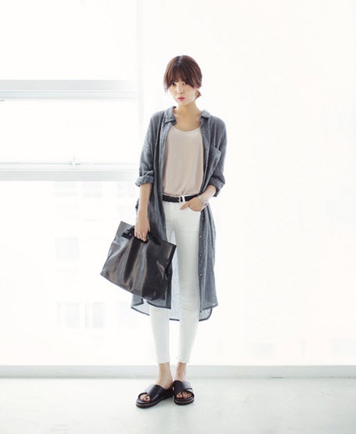 | Ngôi sao Hàn Quốc "chất lừ" với sơ mi siêu dài được phối layer cùng cardigan. |