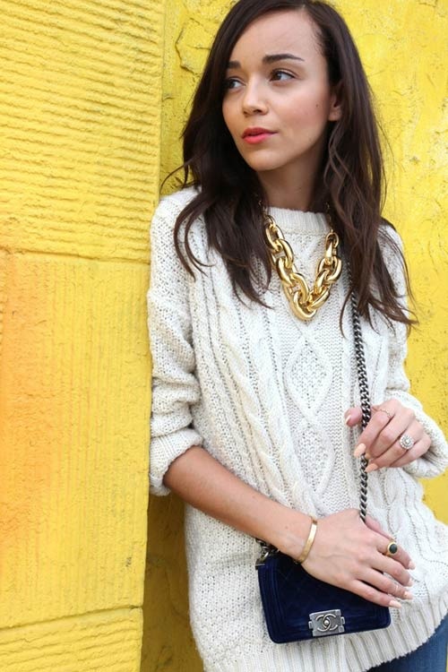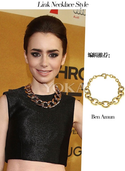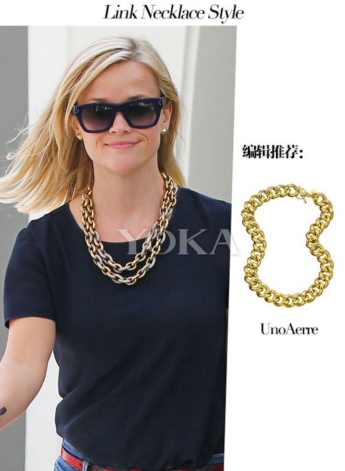 | Vòng cổ dây xích thường được các ngôi sao kết hợp với trang phục màu trung tính để tạo điểm nhấn. |