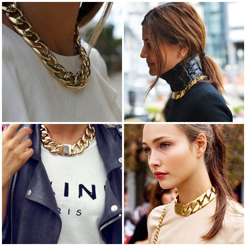 Chưa bao giờ những chiếc vòng cổ đúc kim loại, to bản lại được yêu thích như hiện nay. Nguyên nhân trỗi dậy của vòng cổ kim loại có thể được giải thích bởi sự bùng nổ của trào lưu thời trang tối giản. Khi những bộ đầm trơn, bộ trang phục màu sắc trung tính đang ngày một yêu thích thì các nhà mốt mong muốn tìm ra một thứ phụ kiện thật sáng, thật ấn tượng để bộ cánh tối giản bớt tẻ nhạt và trở nên bắt mắt hơn.