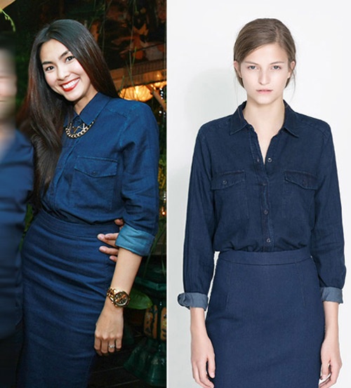 | Tăng Thanh Hà mới đây cũng xuất hiện với chiếc vòng cổ ấn tượng, kết hợp với cây denim thời thượng. |