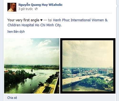 | Những hình ảnh đầu tiên của con gái Phạm Quỳnh Anh – Quang Huy đã được bạn bè chia sẻ trên các mạng xã hội từ buổi trưa ngày 1/11/2012. |