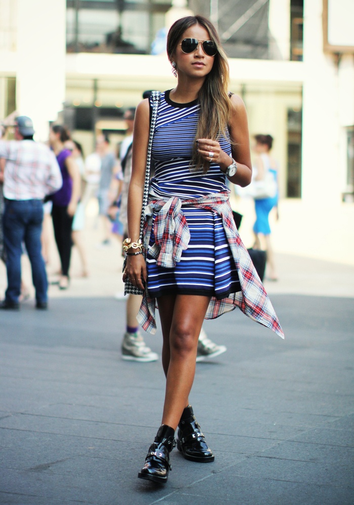 | Xuống phố đầy duyên dáng với thời trang đầm kẻ. |