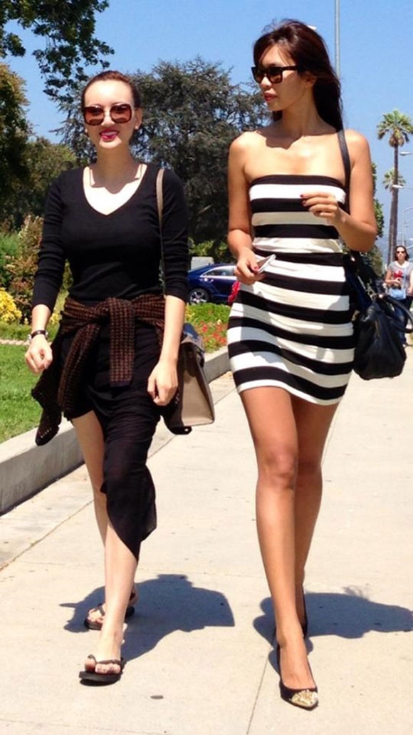 | Thời trang sân bay của Andera không thể thiếu chiếc váy kẻ ôm sát tôn đường cong cơ thể. |