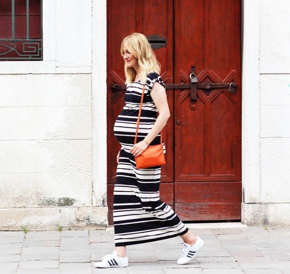 | Ngay cả bà bầu cũng không thể làm ngơ với thời trang kẻ. |