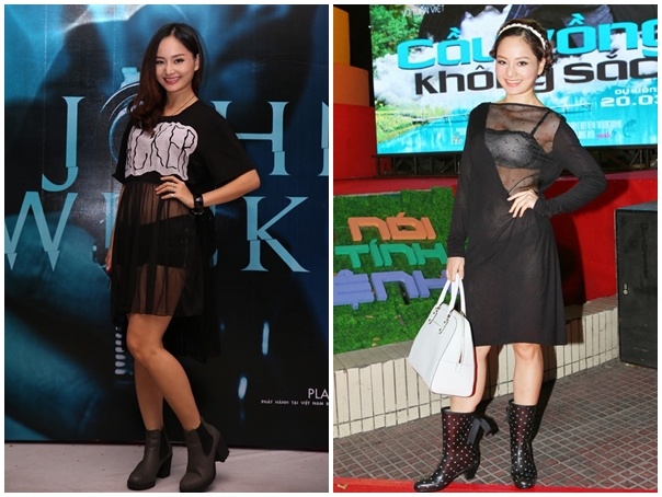 Ca sĩ Hồng Nhung để lại hình ảnh không mấy hợp mốt trong 6 tháng đầu năm. Thiết kế áo voan lưới mỏng trong ảnh khiến bà mẹ hai con lọt nhóm sao mặc xấu. Một số cho rằng, váy áo gợi cảm táo bạo không phù hợp vóc dáng nhỏ bé của "cô Bống".