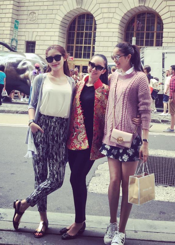 | Trong chuyến lưu diễn tại Pháp hồi tháng 7, Huyền My, Phạm Hương, Linh Nga thu hút trong những bộ cánh mùa lạnh mang dấu ấn riêng. Bà mẹ một con sang trọng với áo khoác gấm truyền thống. |