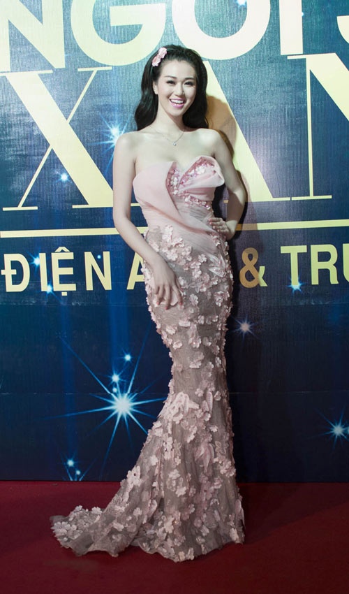 | Diễn viên Ninh Dương Lan Ngọc thu hút khi sử dụng váy đính hoa tinh tế và thanh nhã. |