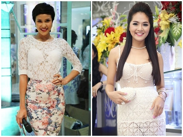 | MC Mai Phương và diễn viên Thúy Nga lọt nhóm sao xấu vì trang phục nội y không mấy tinh tế. Các tín đồ thời trang cho rằng, cách chọn bộ cánh bên ngoài lỗi mốt khiến tổng thể trở nên kém sang trọng và rườm rà. |
