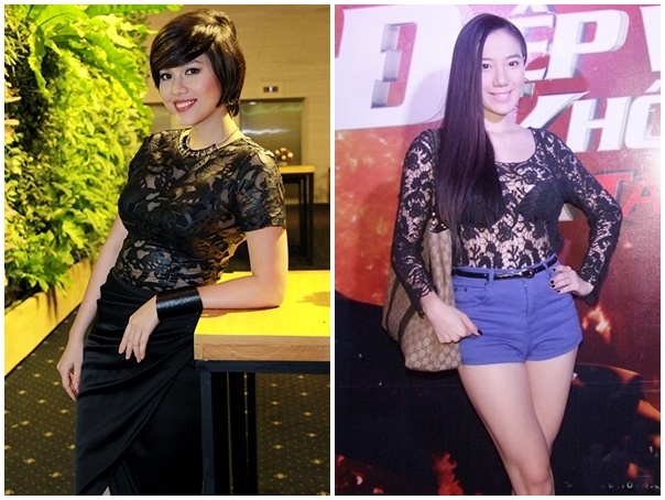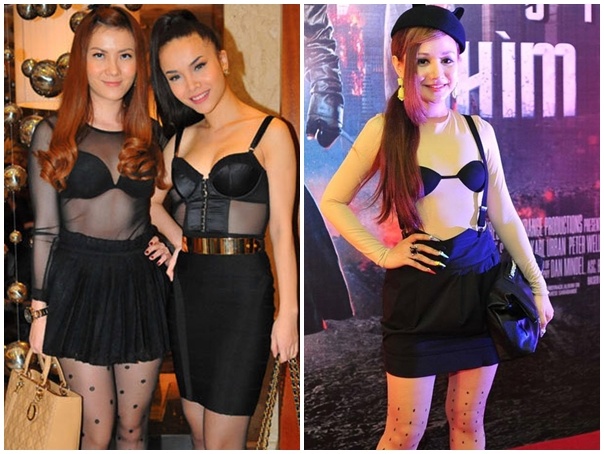 | Trang phục bên ngoài rườm rà, phụ kiện lạc tông cũng là cách khiến nhiều sao nữ nhận phải đánh giá thấp khi diện mốt nội y gợi cảm. Chị em Song Yến và MC Việt Nga từng mắc lỗi trang phục này. |