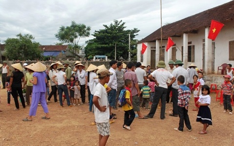 Trong dịp lễ khai giảng, đồng loạt bà con nhân dân làng Văn Hà, xã Quang Sơn, Đô Lương (Nghệ An) đã đưa con đến điểm trường lẻ dự lễ khai giảng mà không có giáo viên để phản đối việc chuyển từ điểm trường lẻ lên trường chính.