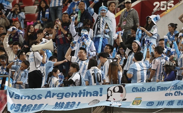 Rất nhiều CĐV có mặt tại sân vận động quốc gia Bắc Kinh cổ vũ cho Messi và đội tuyển Argentina. Đây là nguồn khích lệ cực lớn cho những vũ công tango.