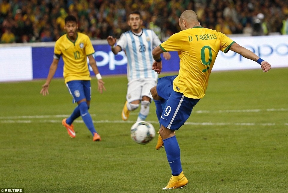 Màn tỏa sáng rực rỡ của tiền đạo Diego Tardelli giúp Brazil dễ dàng đánh bại Argentina trong trận giao hữu diễn ra tại Bắc Kinh, Trung Quốc.