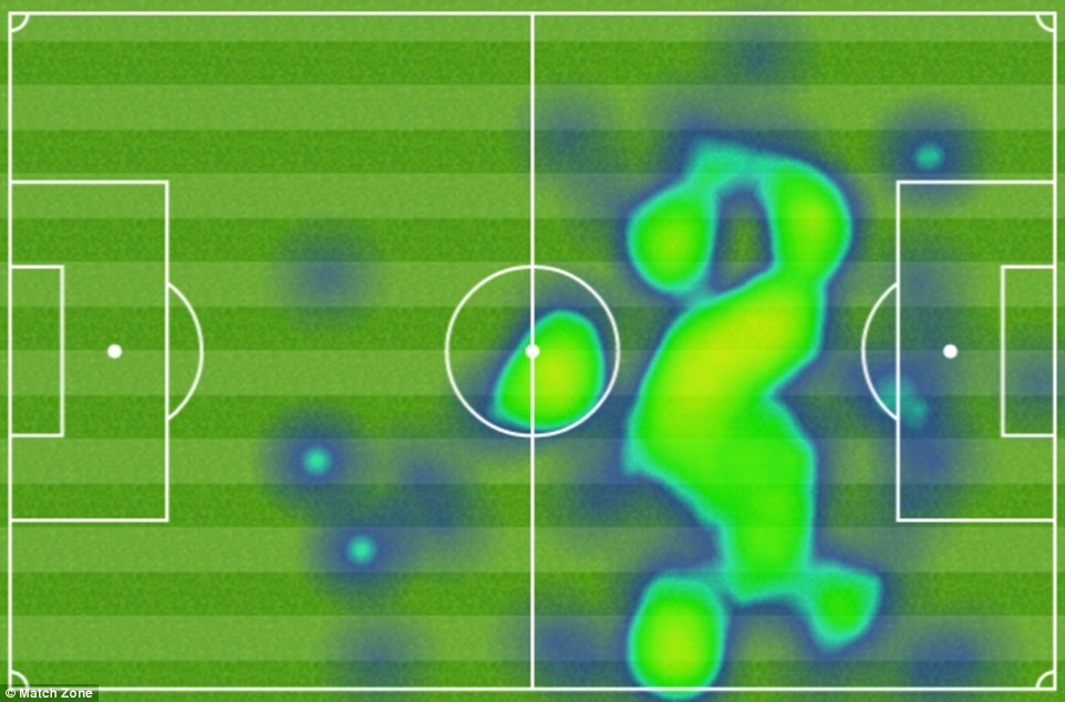 | Sơ đồ nhiệt mô tả tầm hoạt động của Neymar. |