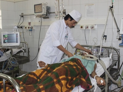 | Bệnh nhân ngộ độc rượu Bùi Văn Đáng vẫn đang phải điều trị đặc biệt. |