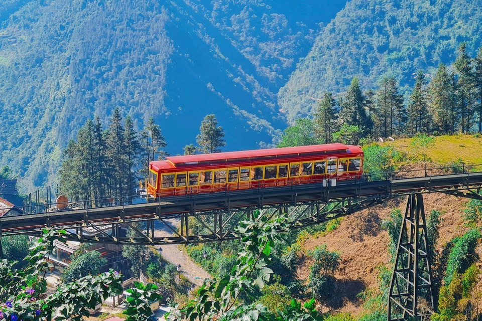 Chuyến tàu hỏa leo núi nối liền trung tâm Sa Pa với ga đi cáp treo Fansipan. Ảnh: Nguyên Chi. |