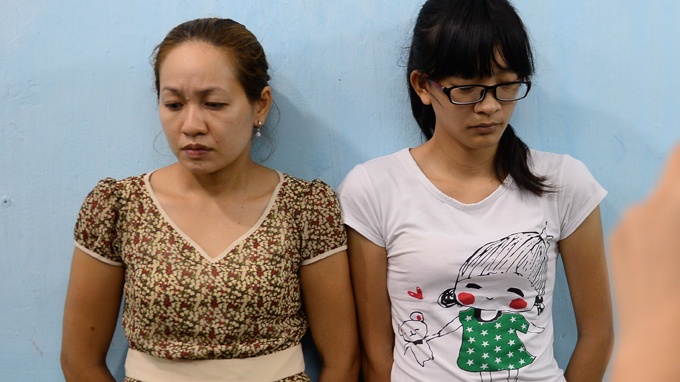 | Lê Thị Đông Phương (trái) và Nguyễn Lê Thiên Lý tại trụ sở Công an Q.Thủ Đức, TP.HCM. |