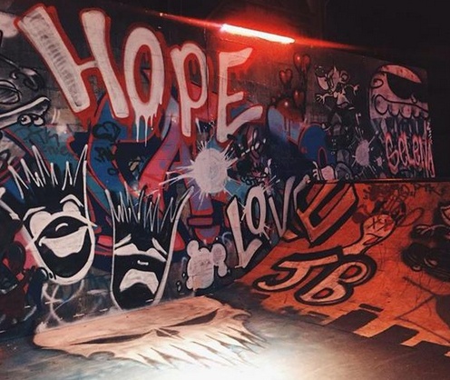 | Tên Selena được kín đáo nhắc đến trong MV của Justin. Tấm ảnh hậu trường trên cho thấy rõ dòng chữ "Selena" ở góc phải của bức tường. |
