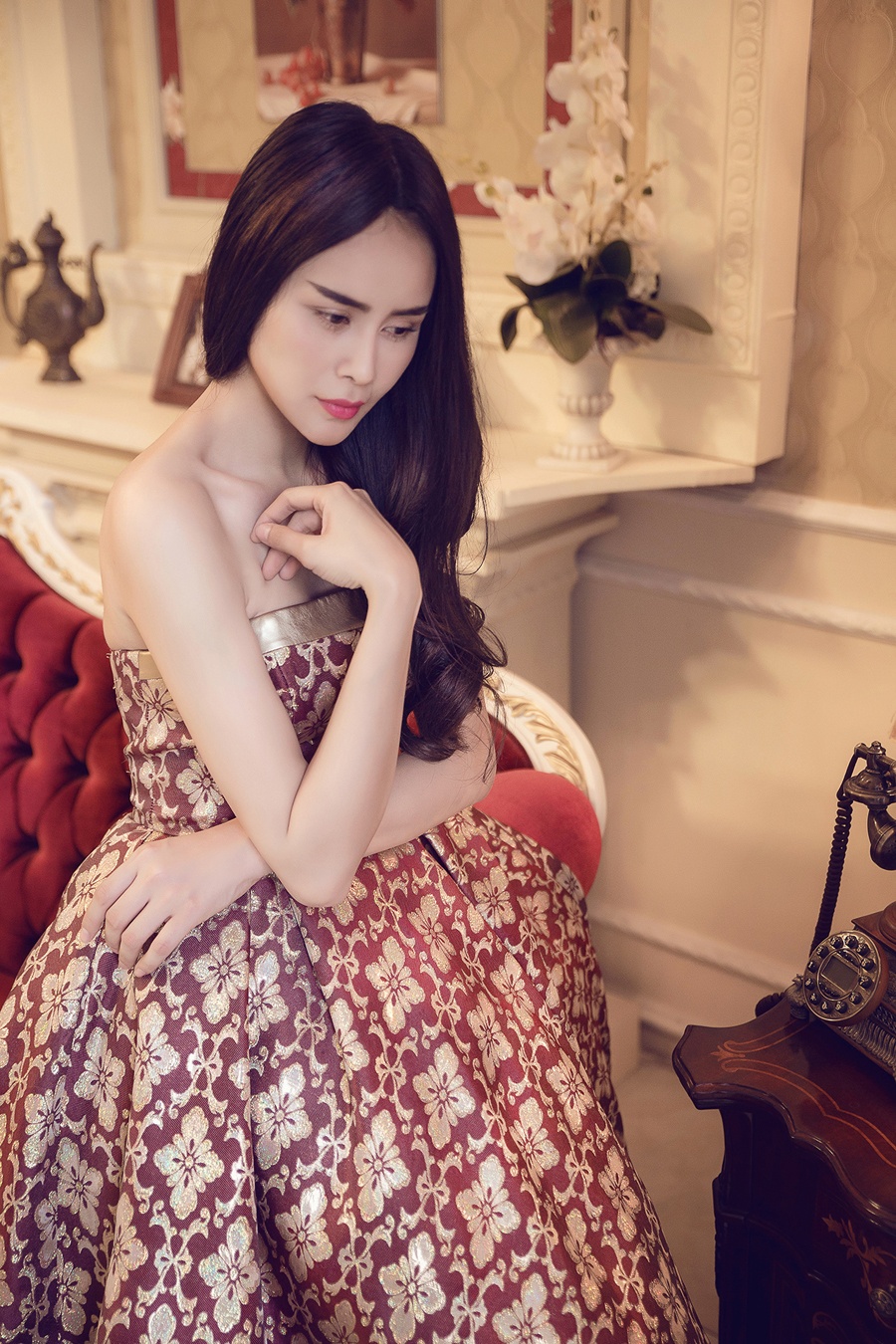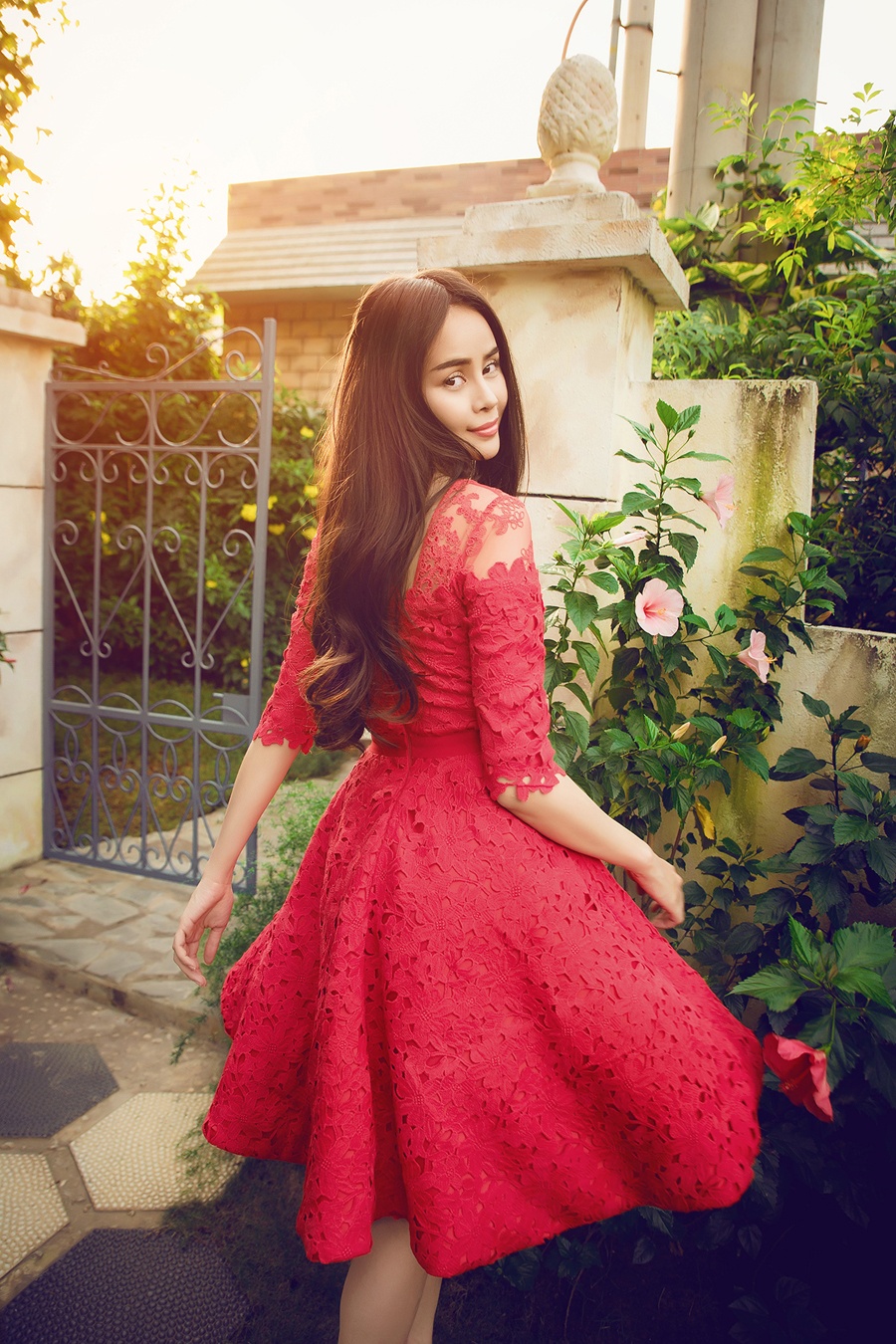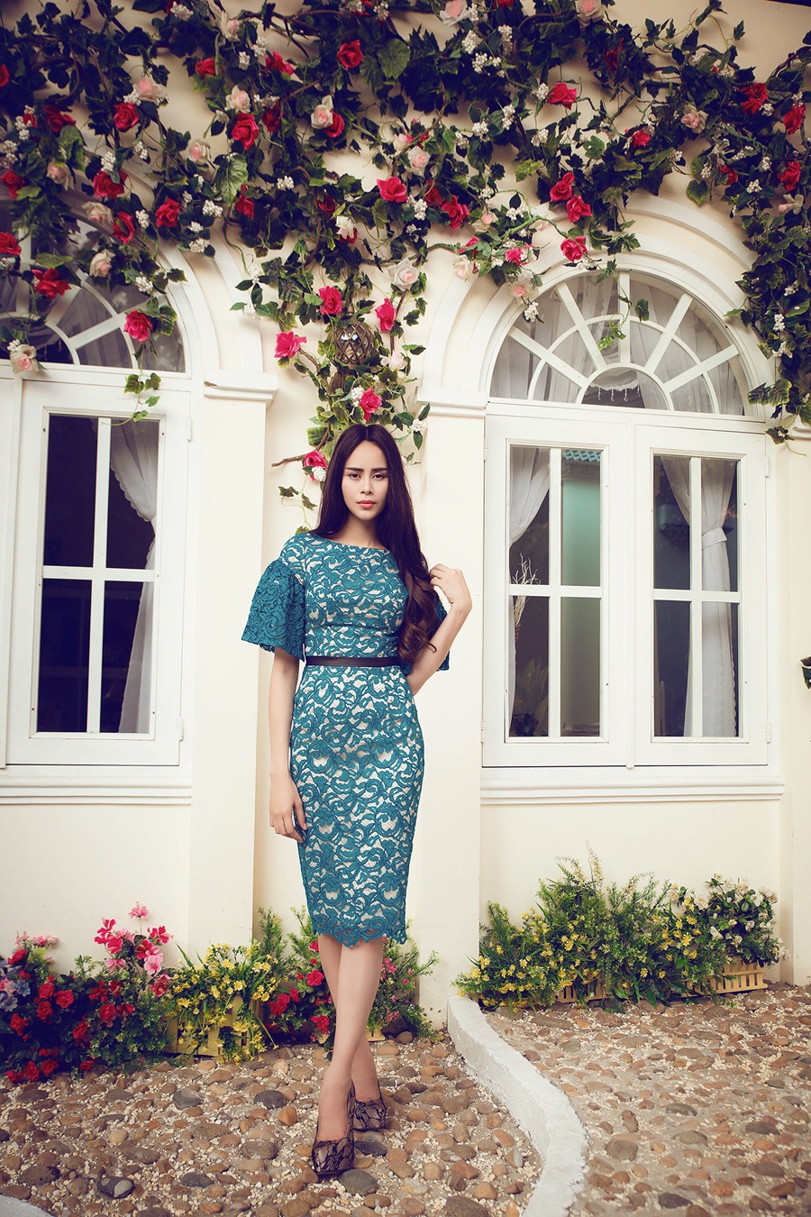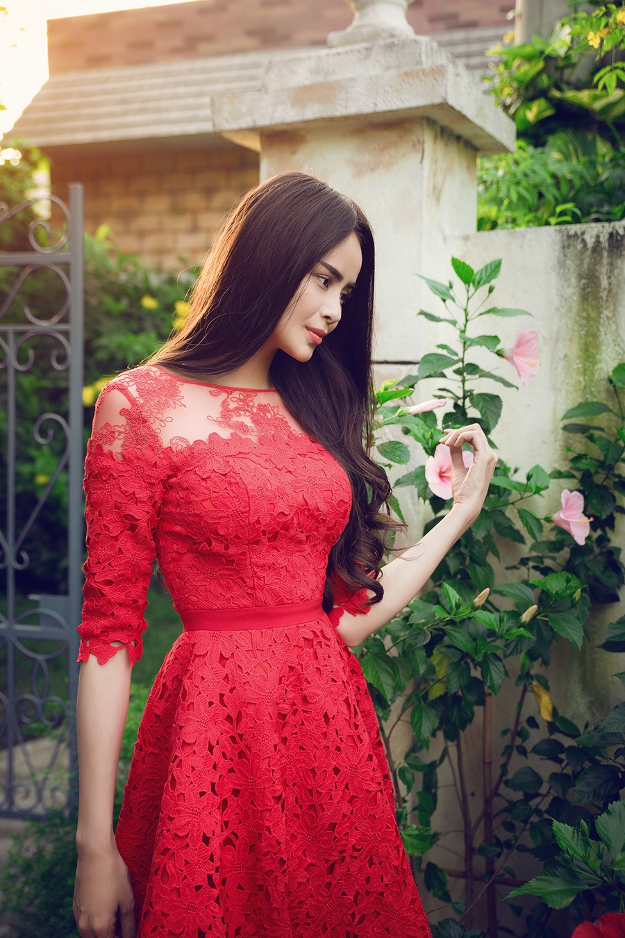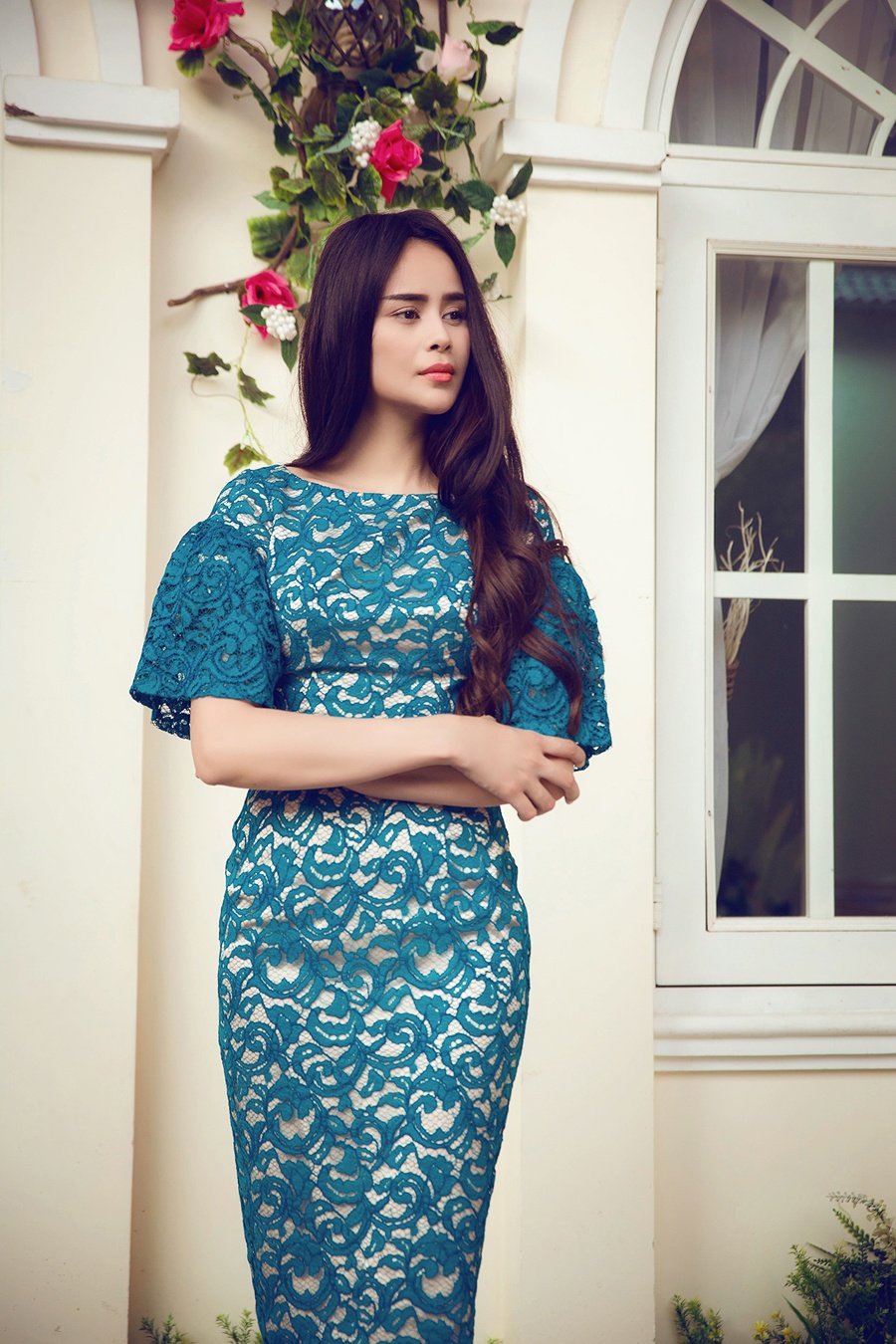 | Thiết kế chất liệu ren nhẹ nhàng và duyên dáng hòa hợp với hình tượng trang nhã của người mặc. |