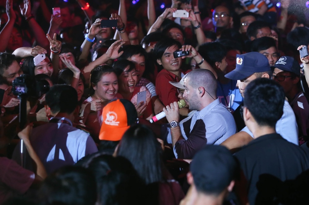 | Shayne Ward cũng phá vỡ tiền lệ trong những lần sao ngoại đến Việt Nam trình diễn trước đây khi tiến gần đến khu vực khán giả để vừa hát vừa giao lưu. |