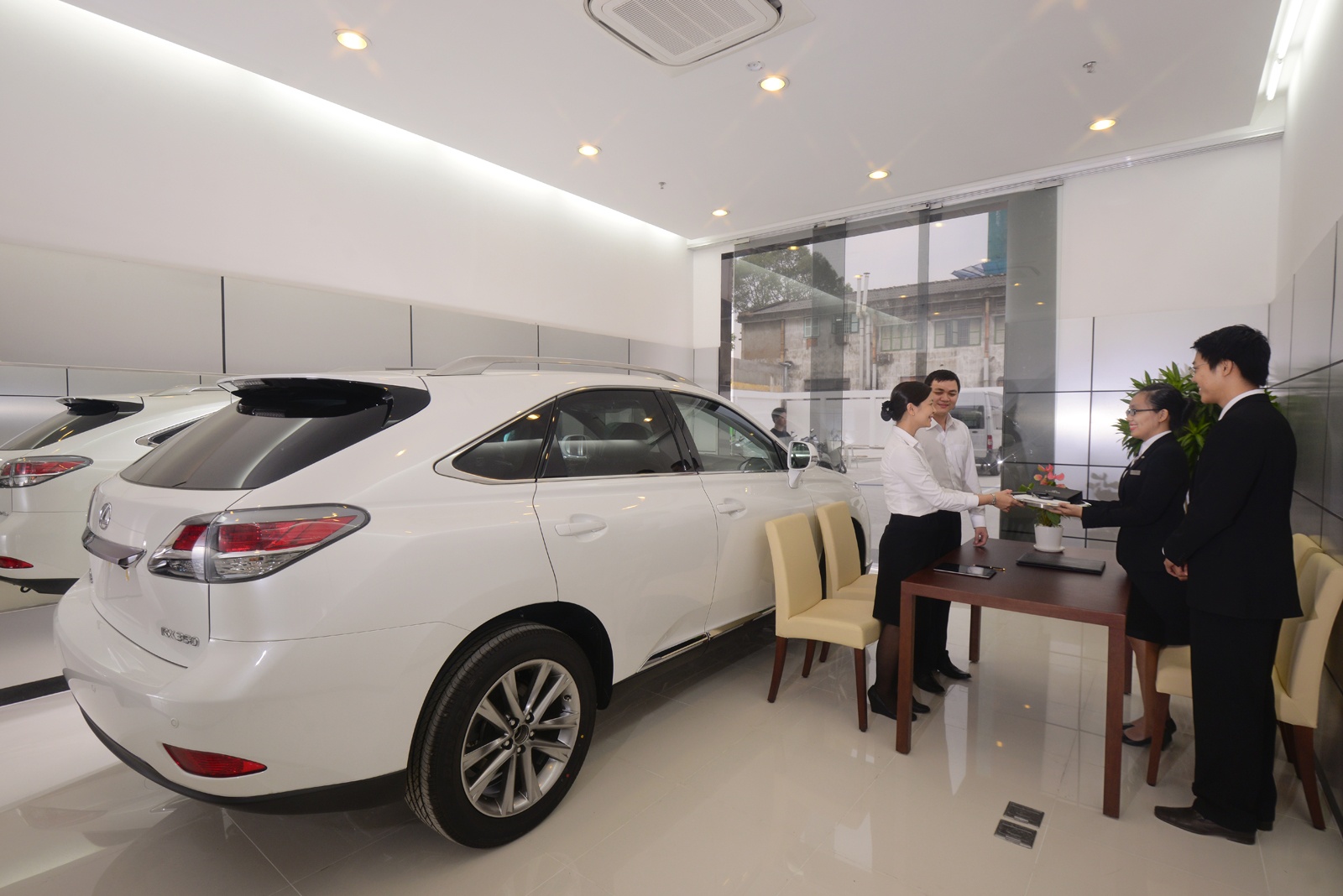 | Gian trưng bày các mẫu xe của Lexus tại Việt Nam. Hiện tại, Lexus trung tâm Sài Gòn đang phân phối 5 mẫu xe chính, bao gồm RX 350, LX 570, ES 350, GS 350 và LS 460L. |