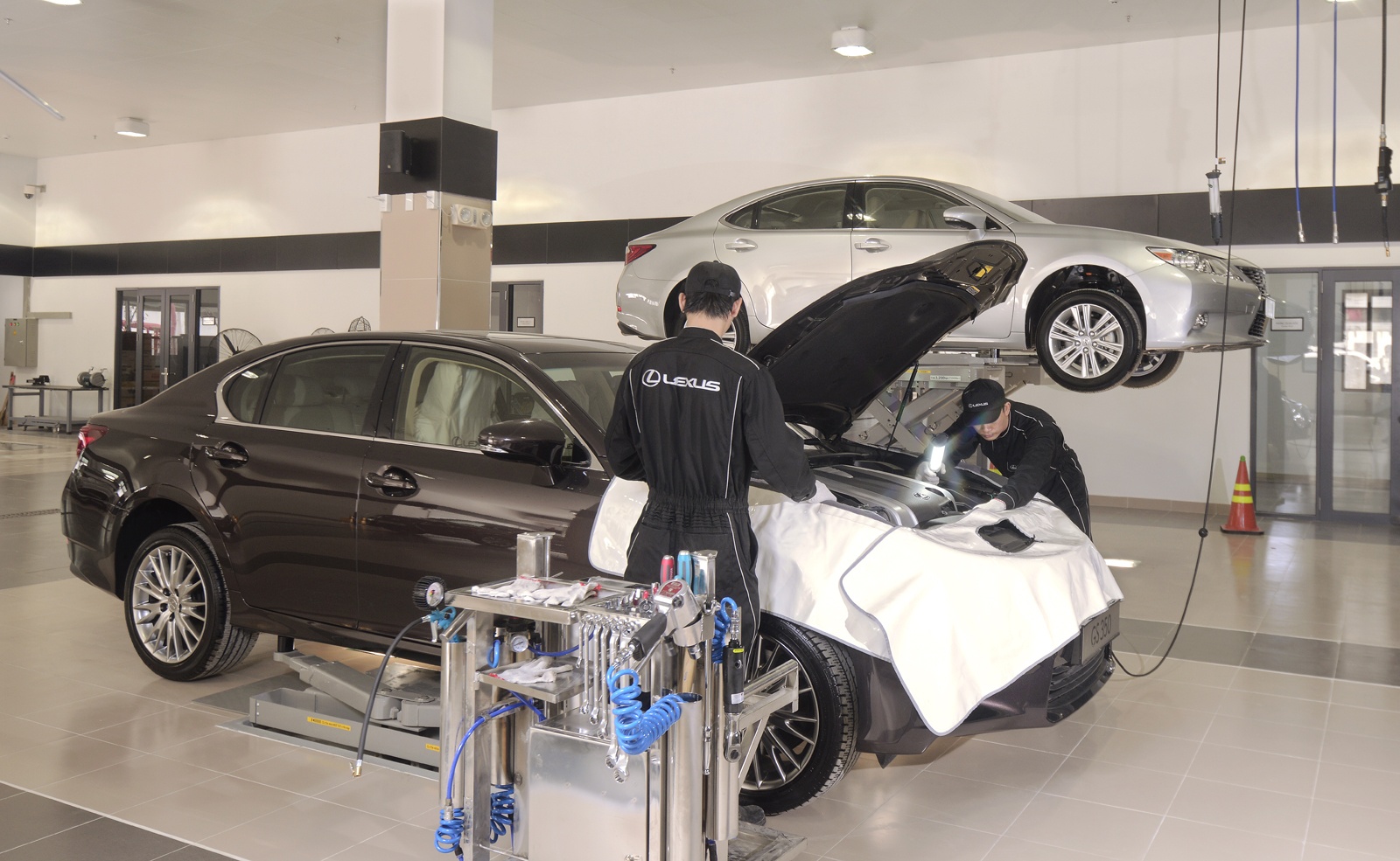 | Khu vực bảo trì, bảo dưỡng xe gồm hai tầng với tổng diện tích hơn 2.000 mét vuông. Trong đó, Lexus dành ra 8 khoang sửa chữa chung, bao gồm 6 khoang sửa chữa nhanh và 2 khoang sửa chữa công nghệ cao. |