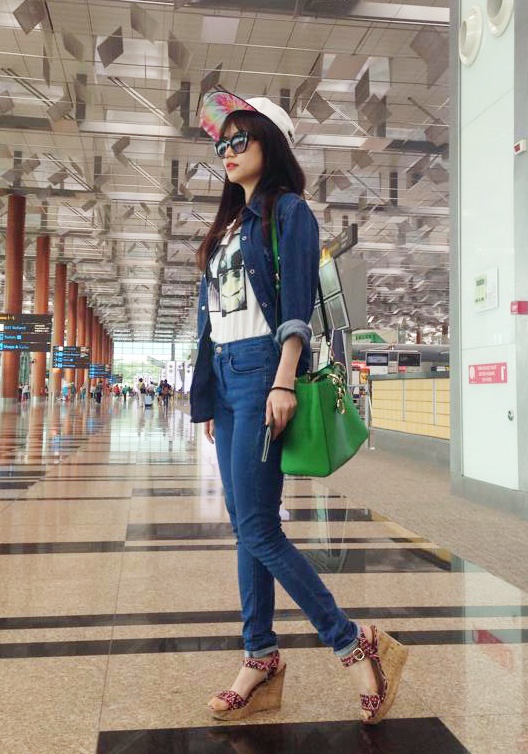 | Để hình ảnh tốt giản nhất có thể, giọng ca Oh my chuối tận dụng cách mix ton-sur-ton. Giày cao gót làm điểm nhấn nhá bắt mắt. |