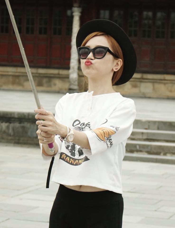 | Khó có thể nhận ra nữ VJ 28 tuổi khi cô diện áo thun năng động, mũ fedora tinh nghịch. |
