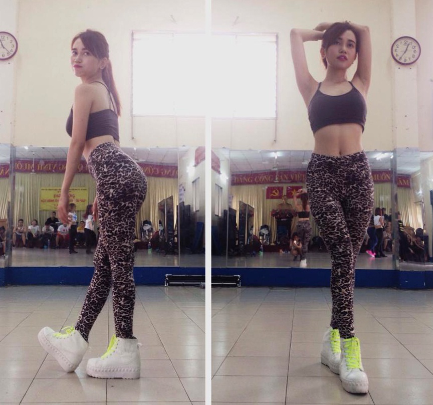 | Trang phục tập vũ đạo của nữ ca sĩ không kém phần sành mốt bởi những màu sắc bắt mắt... |