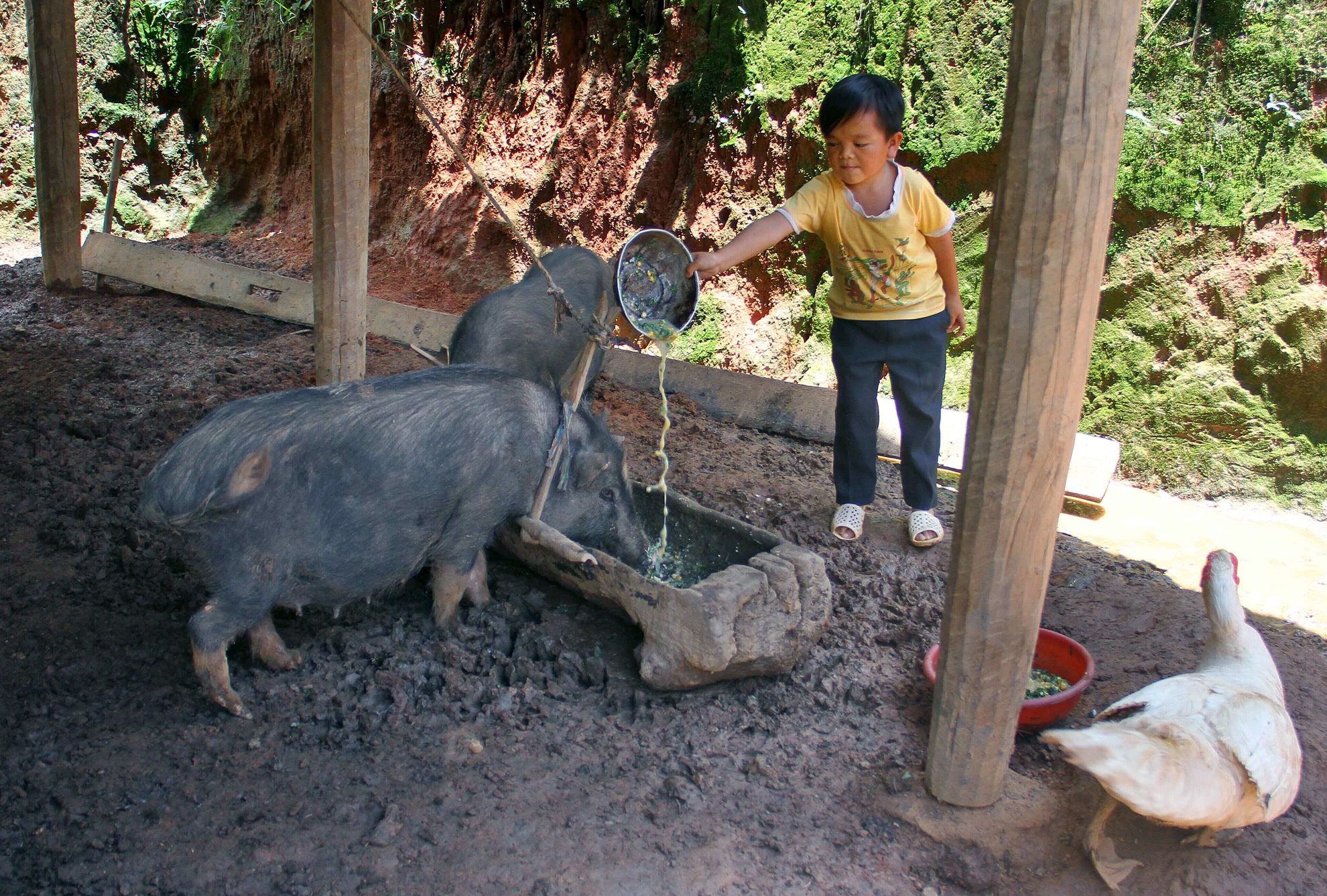 | Với vóc dáng của mình, những ngày nghỉ cuối tuần, Dì cũng chỉ giúp được gia đình những công việc nhỏ như chăn trâu, cho lợn gà ăn… |