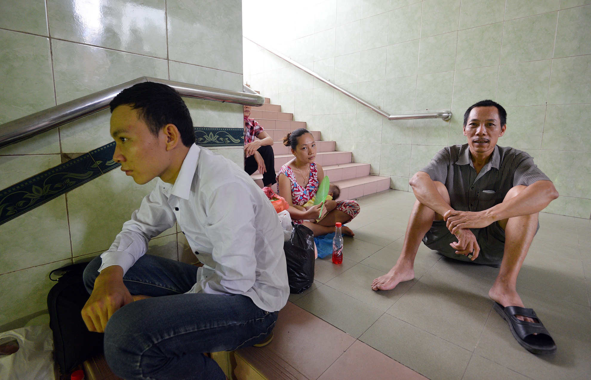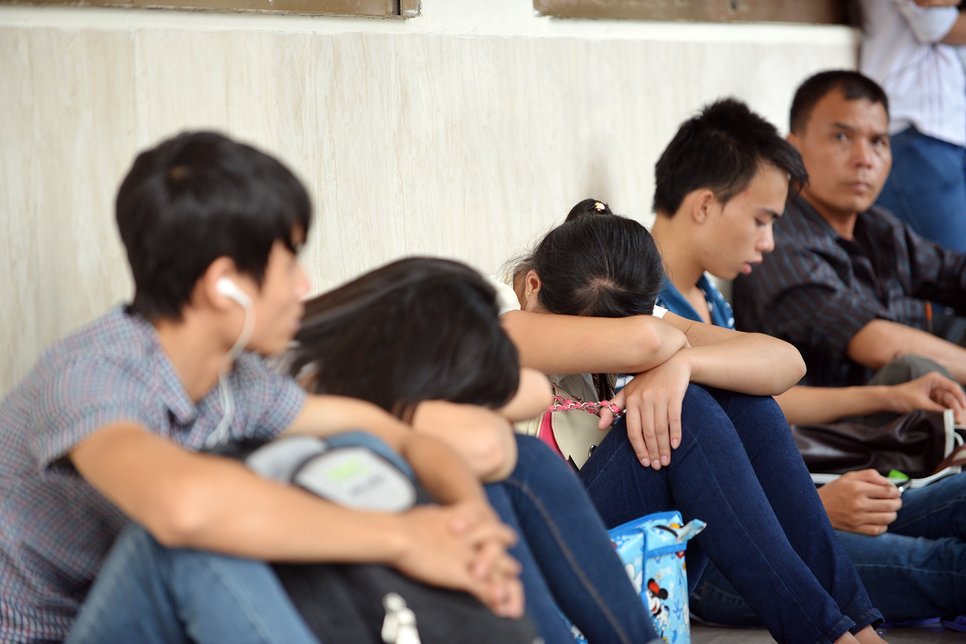| Ở các góc của bến xe, các sĩ tử mệt mỏi ngủ gục chờ đến giờ trở lại quê nhà. |