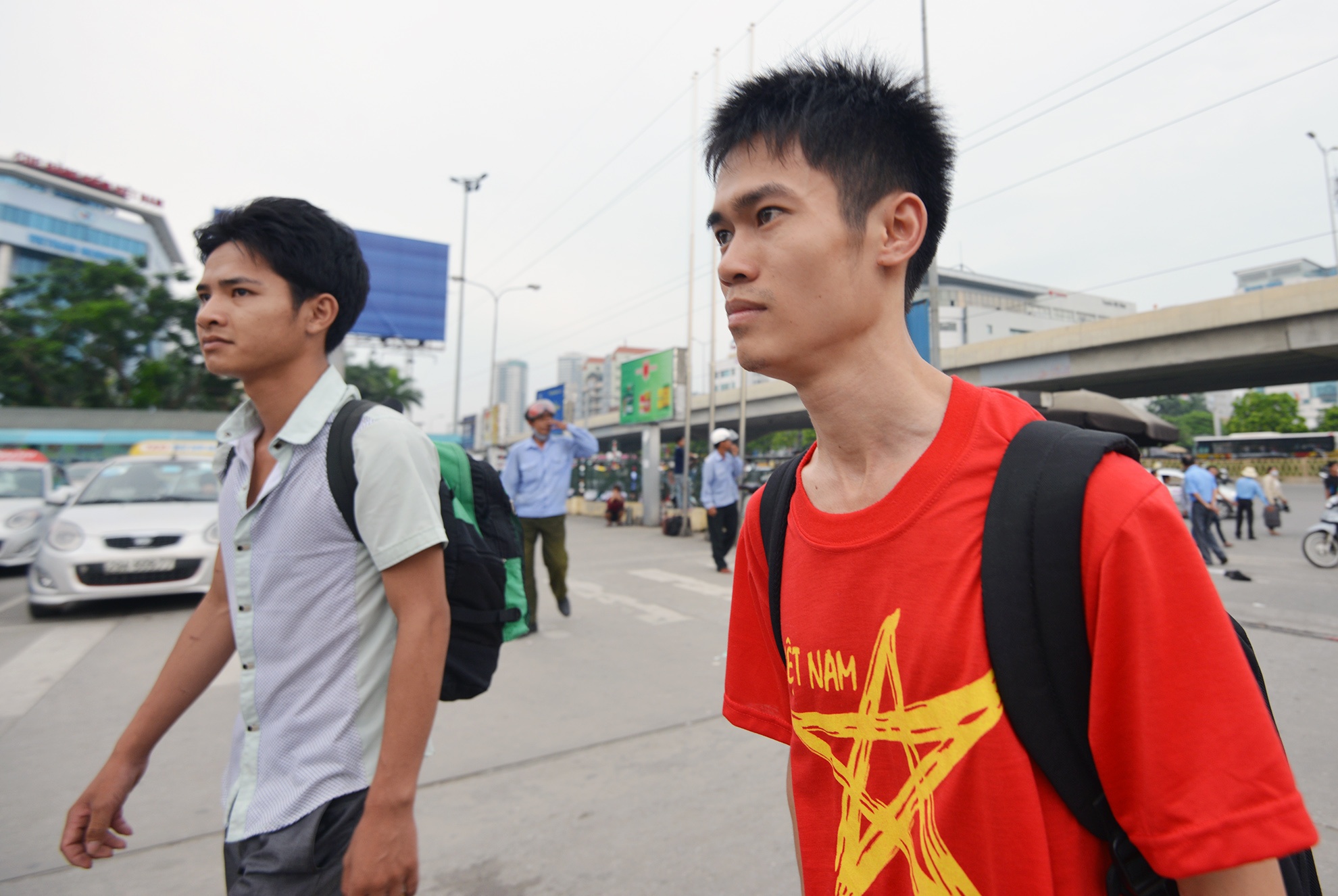 Tuấn Anh (quê Thái Bình) thi vào ĐH Công nghiệp Hà Nội vội vã ra bến xe. Chàng trai quê lúa cho biết, cậu làm khá tốt các môn thi của mình, tuy nhiên tất cả còn chờ vào kết quả cuối cùng.