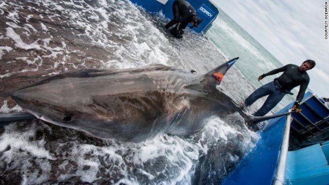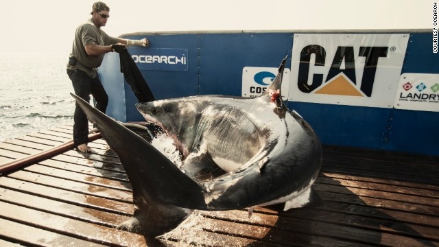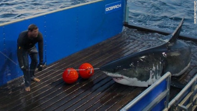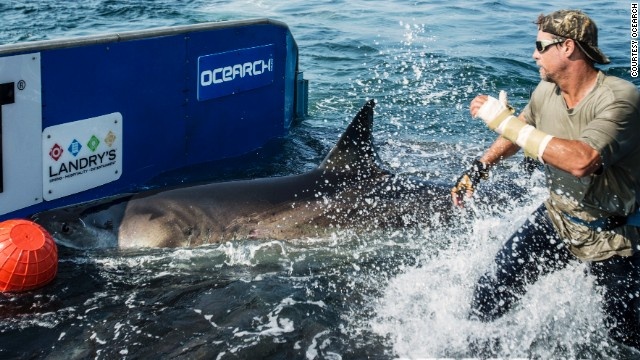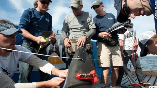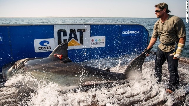 Dự án của chương trình nghiên cứu này là gắn những thiết bị điện tử trị giá tới 10.000 USD lên thân cá mập để có thể theo dõi mọi hoạt động của chúng. Ảnh: CNN