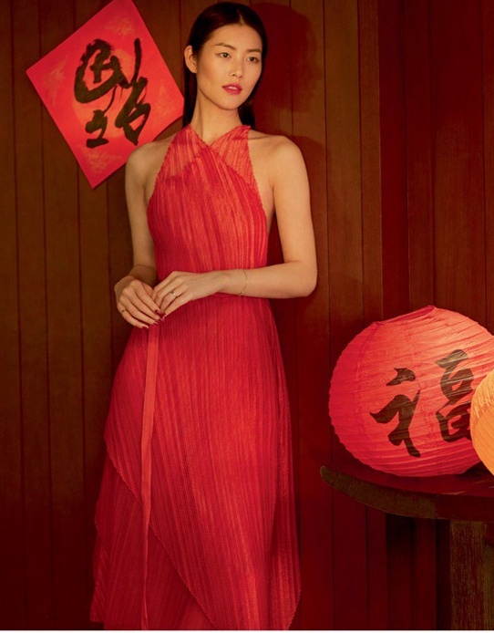 | Vẻ đẹp đậm chất Á đông của siêu mẫu quốc tế Lưu Văn trong bộ váy đỏ rực rỡ. |