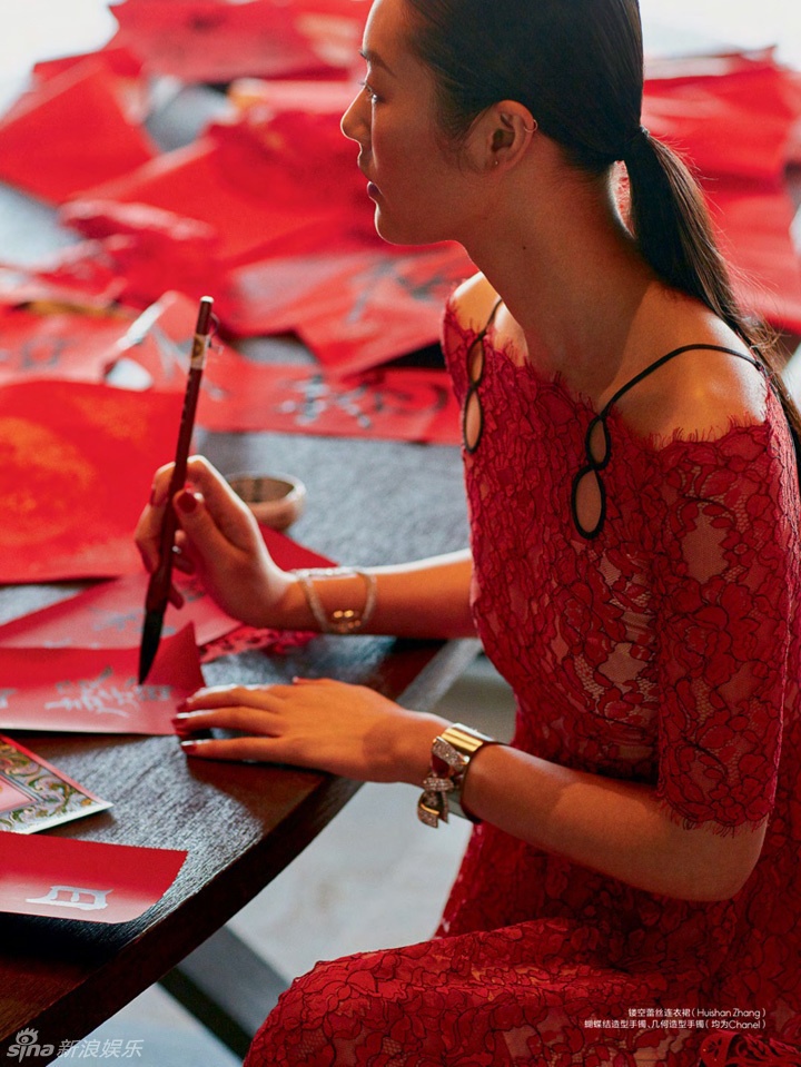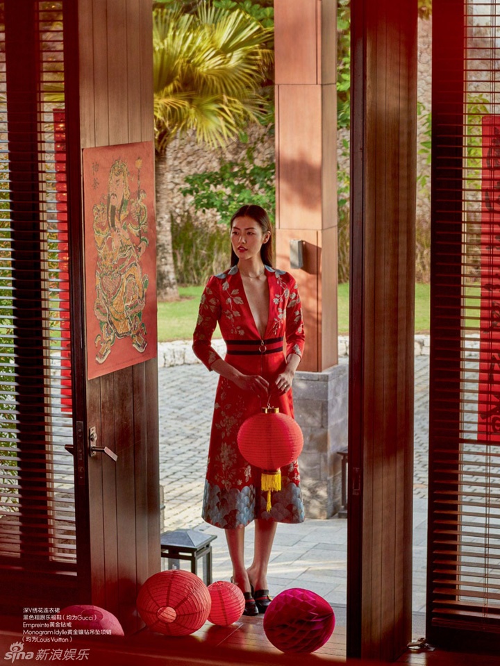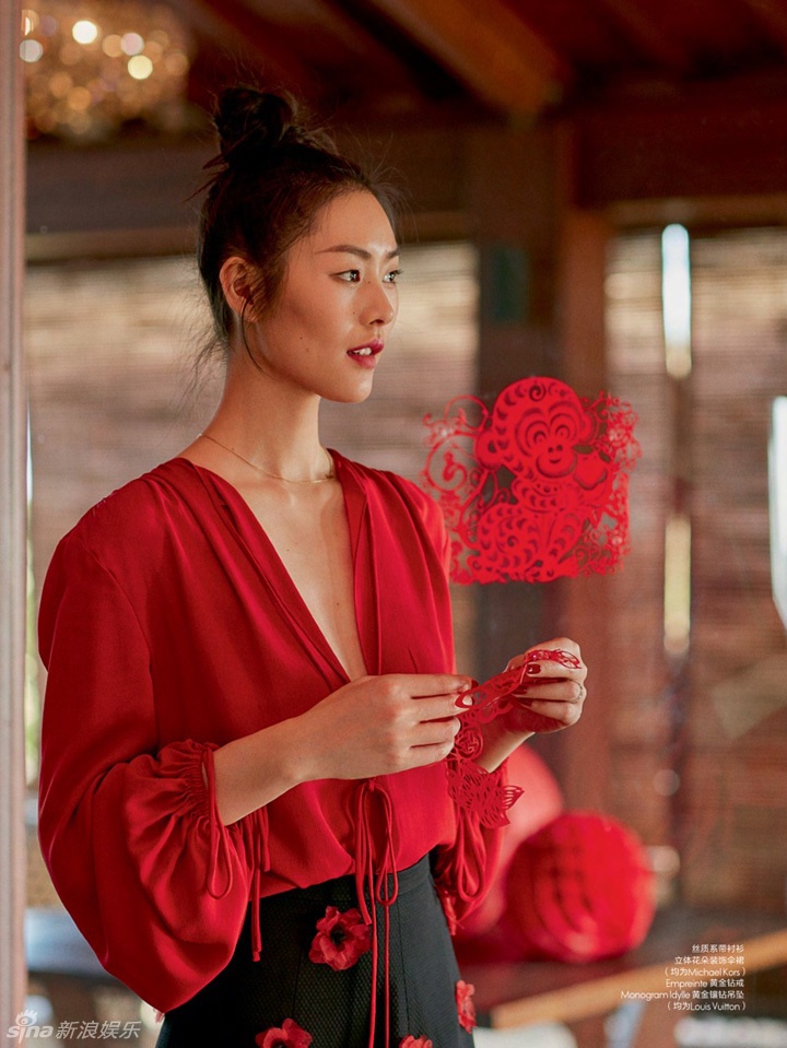 Trên ấn phẩm Elle số tháng 3, Lưu Văn mang tới nét đẹp truyền thống và hoài cổ với sắc đỏ.