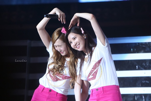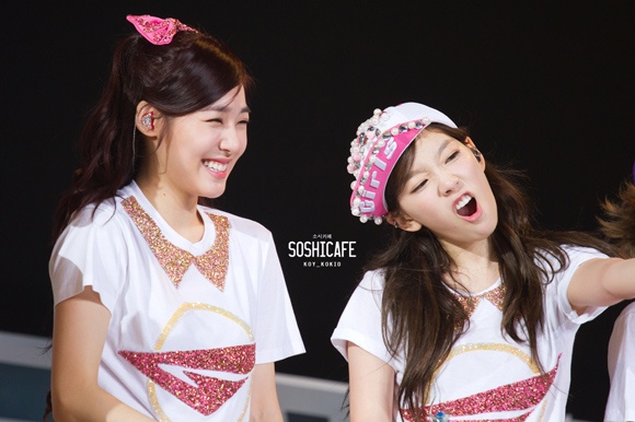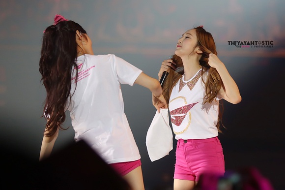 | Jessica nhăn nhó trong khi Seohyun cười toe. |