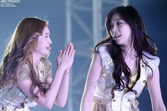| Tiffany ra hiệu với Jessica: "Cậu chết chắc rồi". |