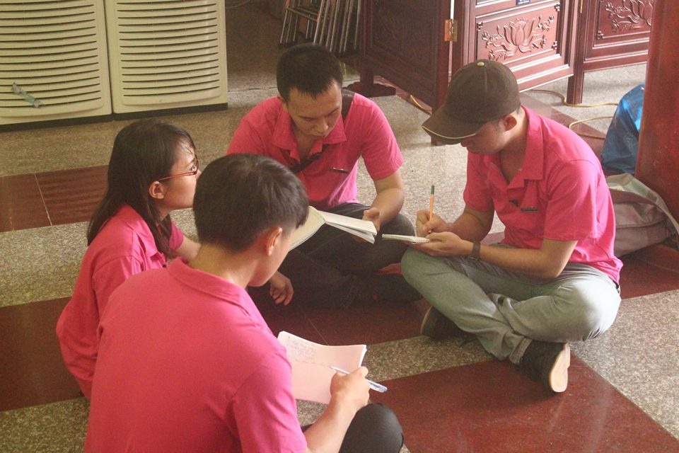 | Đội Hồng thảo luận về chiến lược trong thử thách thứ 3. (Ảnh: STL). |