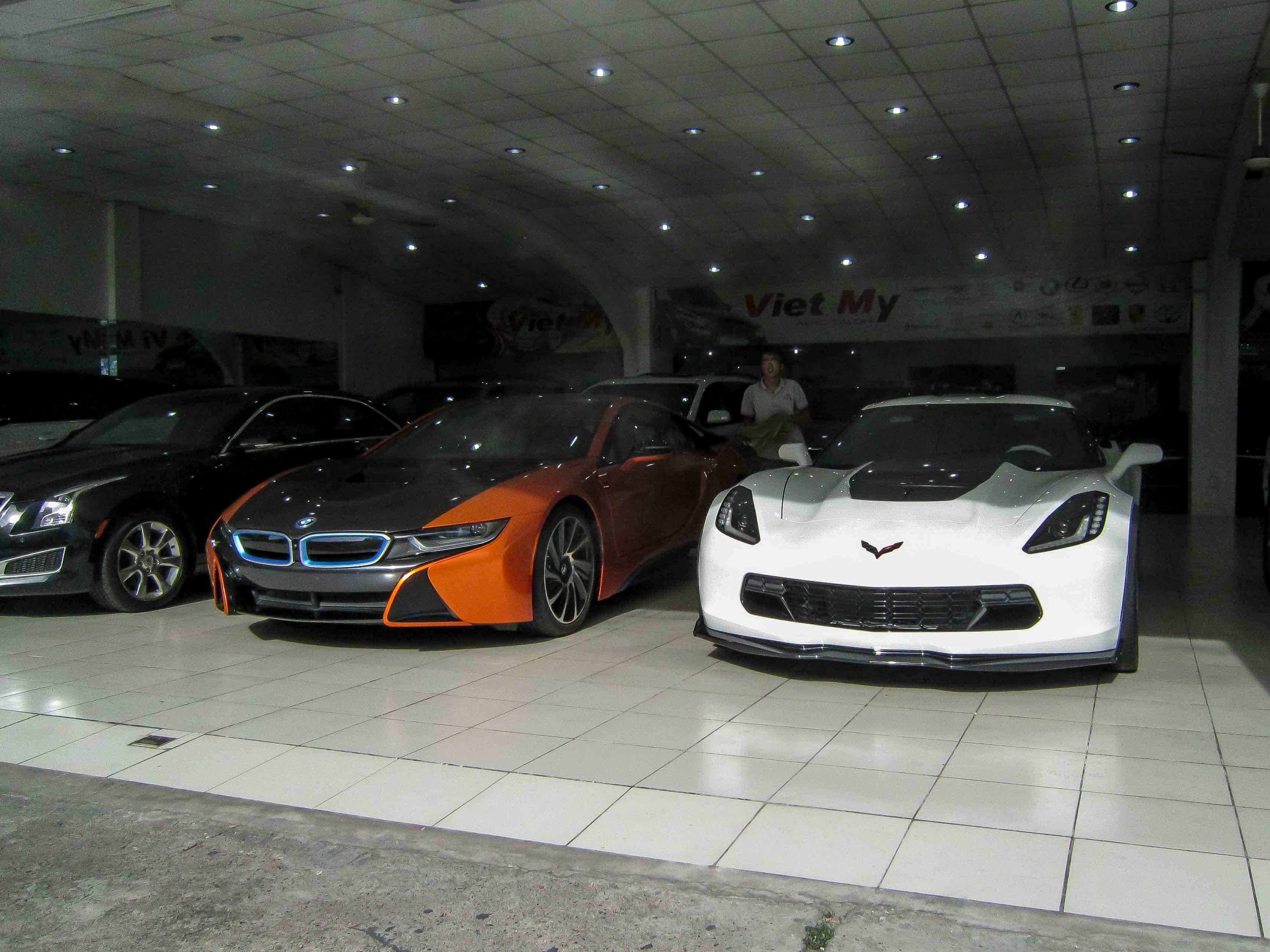 | Bên cạnh Z06 còn chiếc BMW i8 mới đổi màu. Ảnh:TNTBros. |