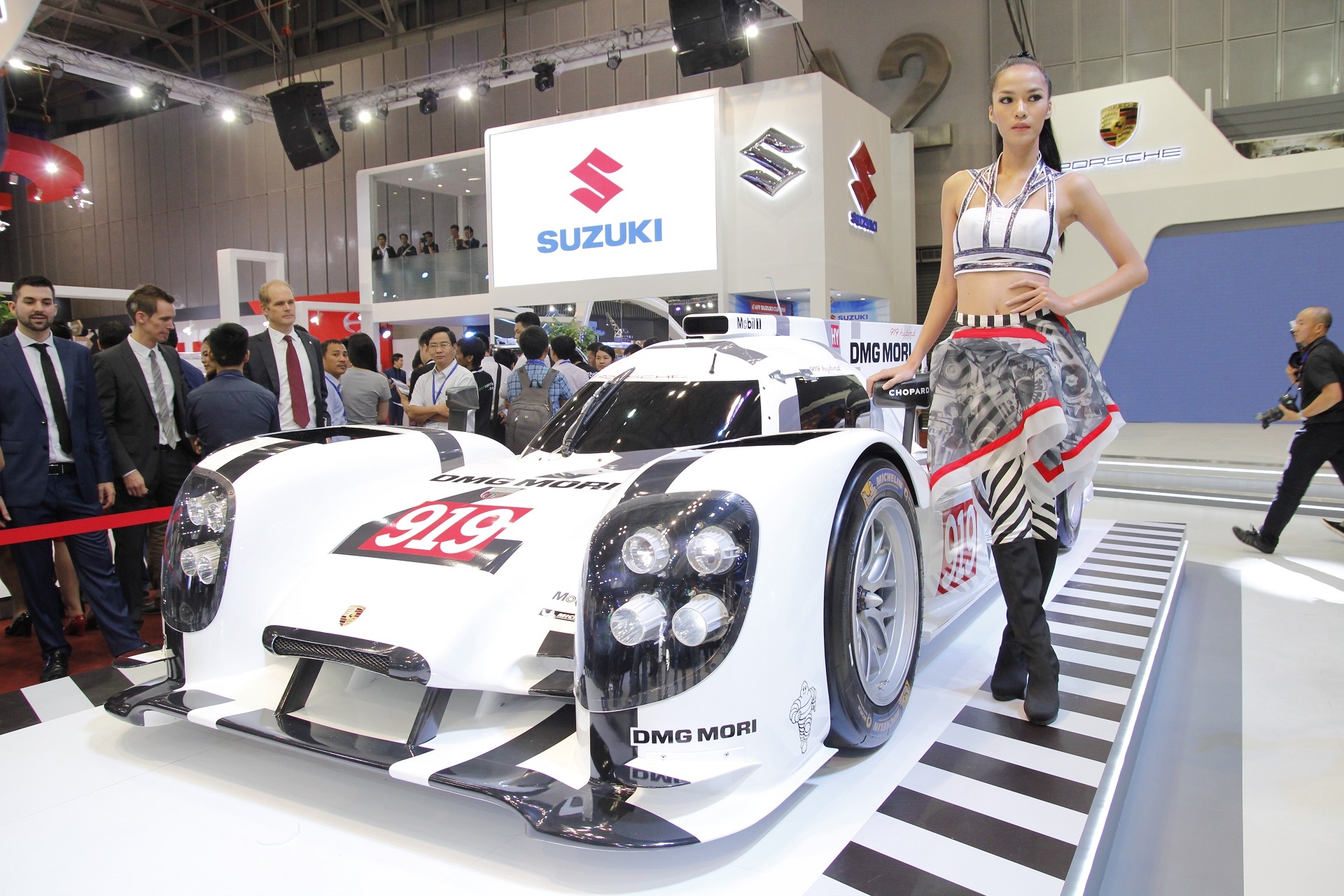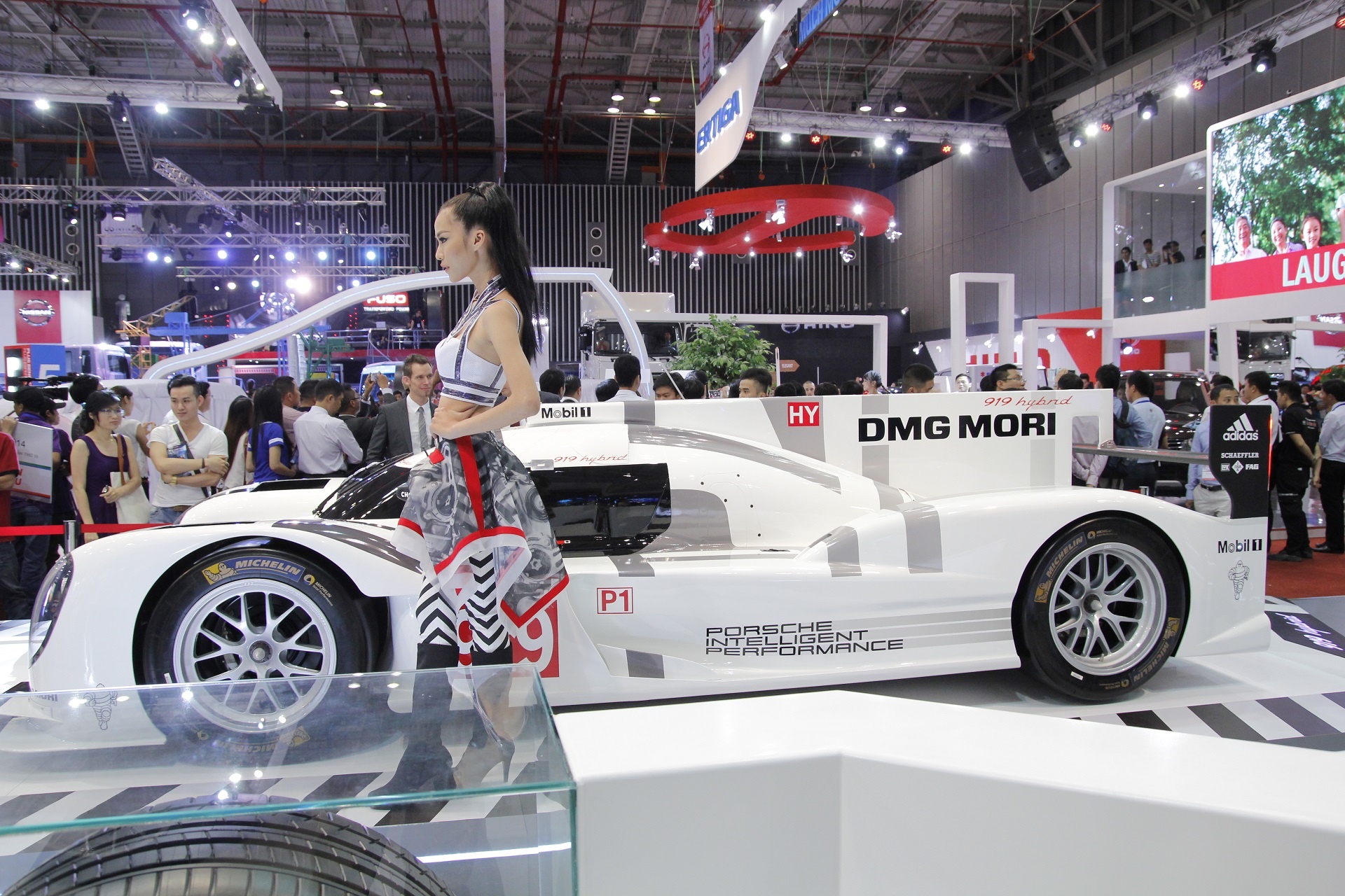 Triển lãm Vietnam Motor Show năm nay có sự xuất hiện của một chiếc xe đua tại gian hàng hãng xe sang Porsche. Đó chính là Porsche 919 hybrid, từng tham gia giải đua LMP1-H 2014.