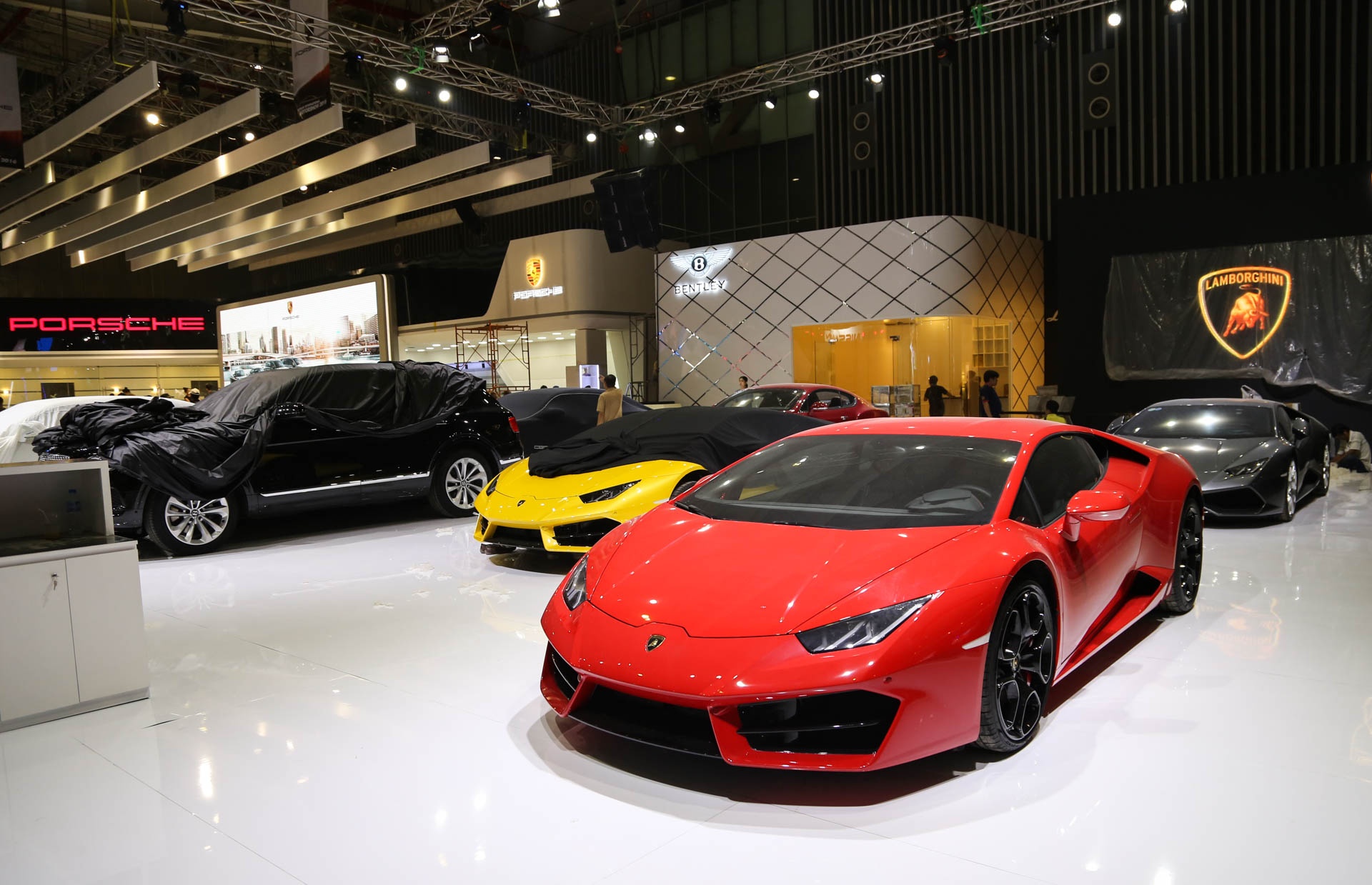 | Gian hàng Lamborghini và Bentley nằm ngay cổng vào. Đây là gian hàng có nhiều siêu xe và xe siêu sang nhất triển lãm, dự kiến sẽ thu hút số đông người tham quan. Những mẫu xe hot nhất phải kể tới ba chiếc Lamborghini Huracan, trong đó có hai chiếc dẫn động cầu sau. Bentley Mulsanne, Bentley Bentayga và một số mẫu xe siêu sang hai cửa dòng Continental.