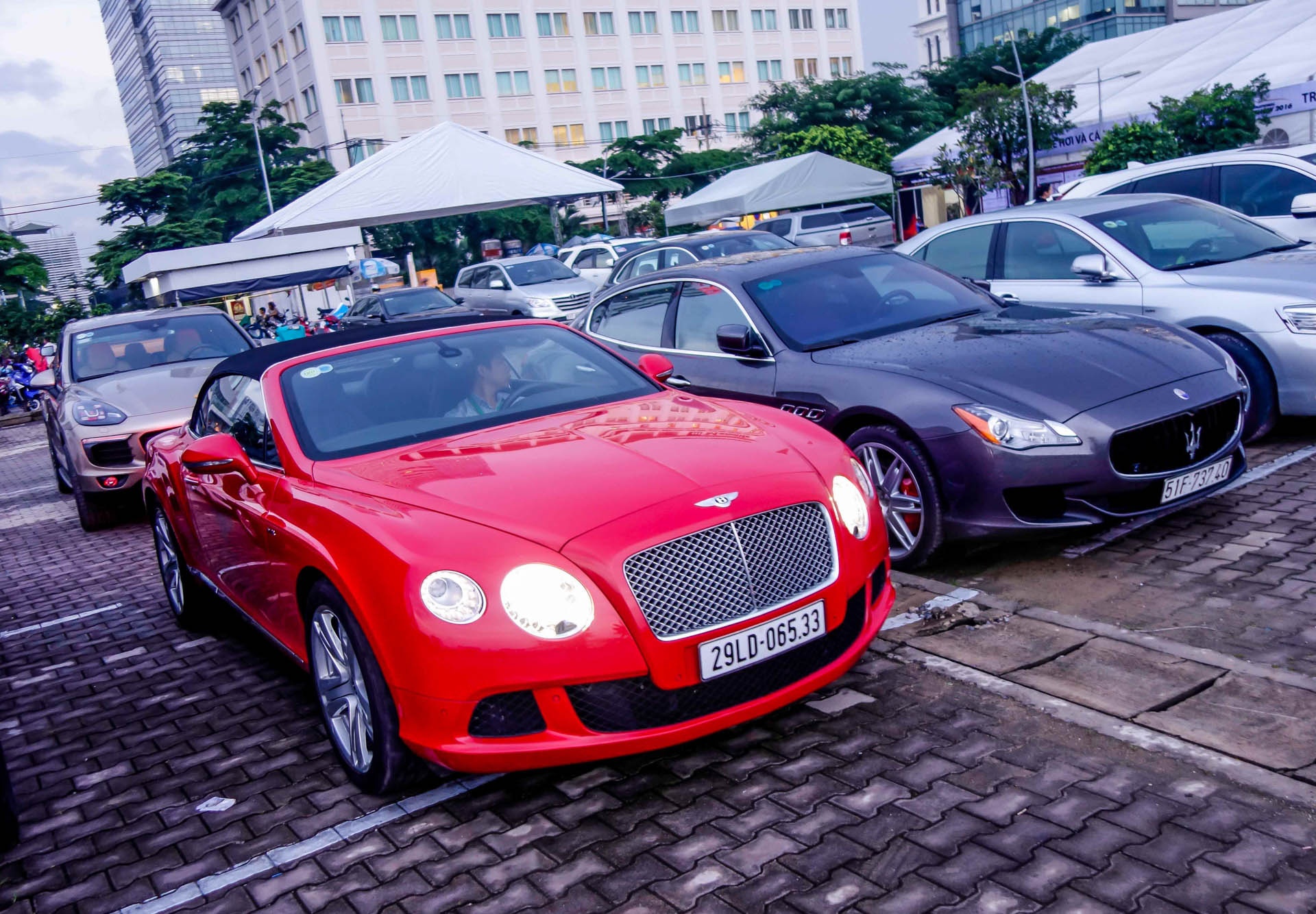 | Xe siêu sang Bentley Continental GTC đỗ cùng Maserati Quattroporte. Vietnam International Motor Show