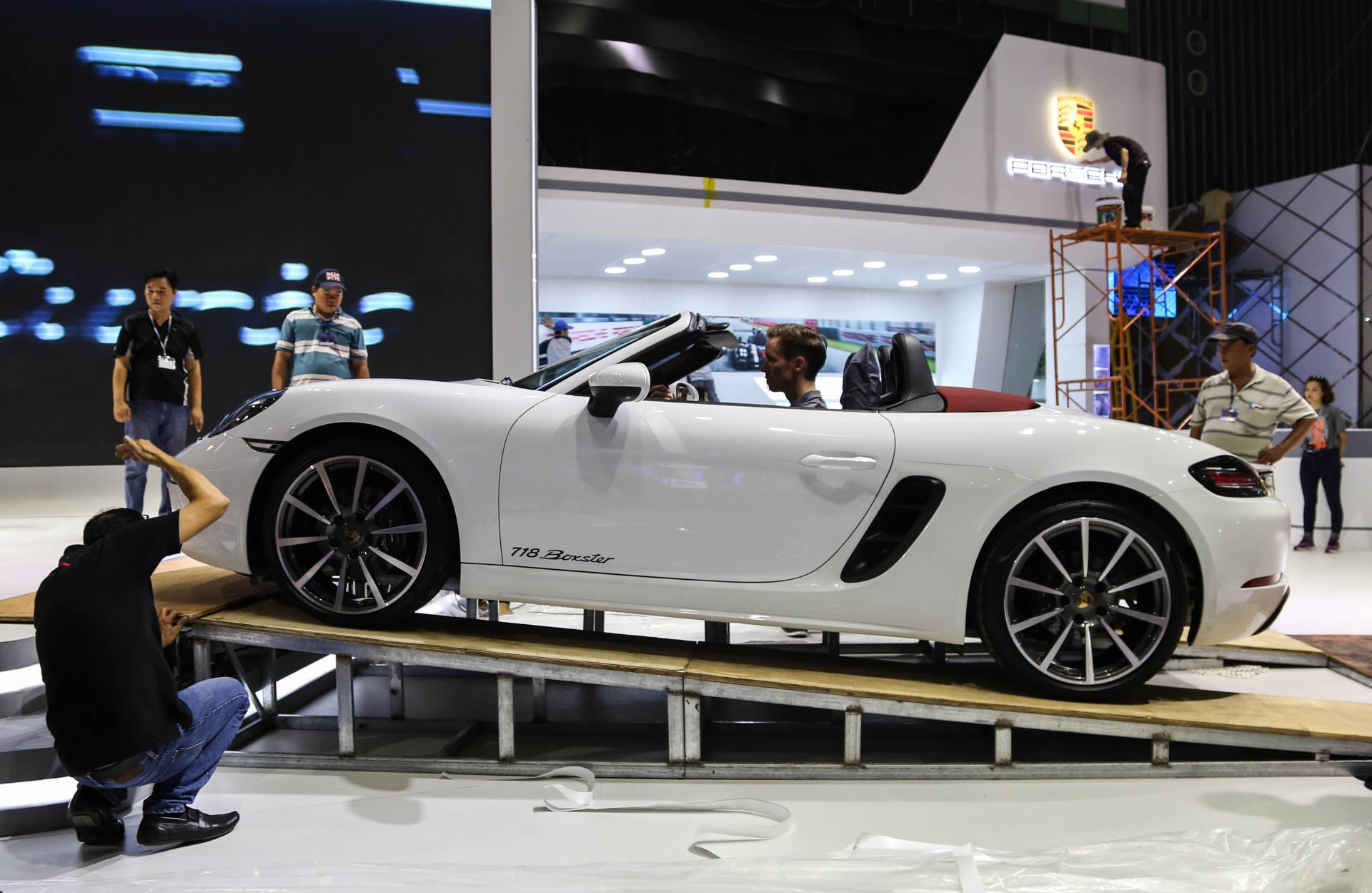 | Hãng xe thể thao Porsche không giới thiệu nhiều mẫu xe mới. Có mặt ở sân khấu trung tâm là chiếc 718 Boxster. |
