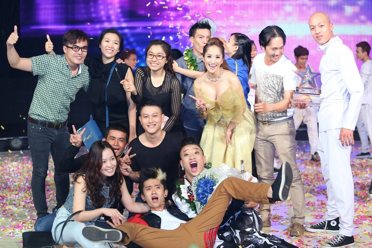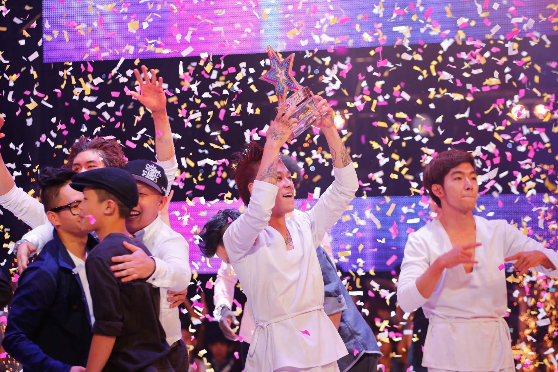 Nhóm S.I.N.E chia sẻ niềm vui chiến thắng cùng ban giám khảo và ê kíp chương trình. Ảnh: Maison de Bil |