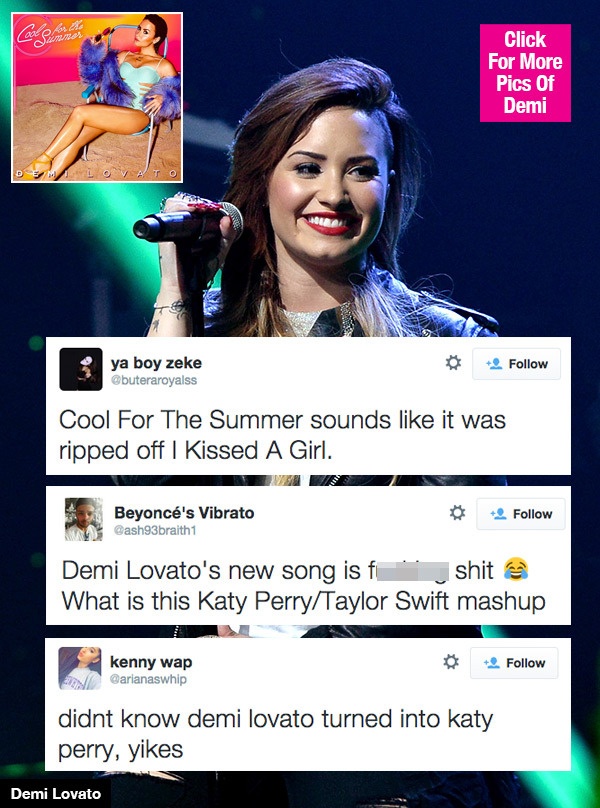 Ca khúc tái xuất của cựu công chúa Disney đang bị chỉ trích là phiên bản lỗi của I Kissed A Girl của đàn chị Katy Perry. Sau khi bản audio của Cool For The Summer rò gỉ trên mạng, người nghe đã đồng loạt chỉ ra những đoạn giống nhau trên Twitter.