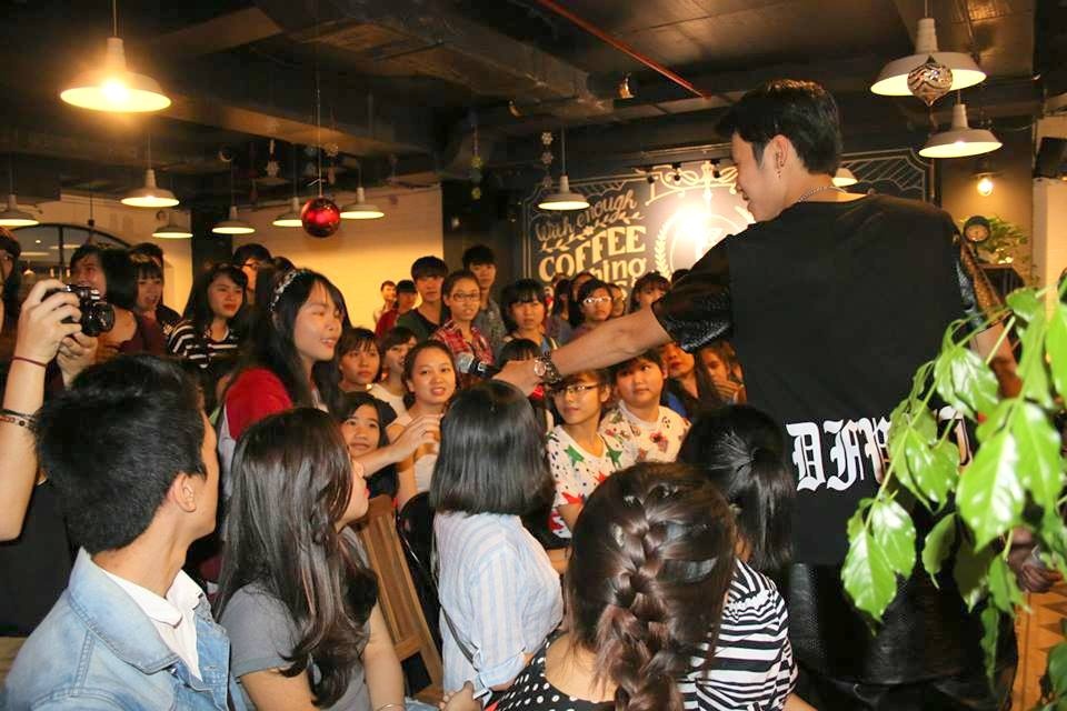 Buổi giao lưu kéo dài hơn 2 tiếng bao gồm nhiều tiết mục như ảo thuật, hát hò với fan hâm mộ...