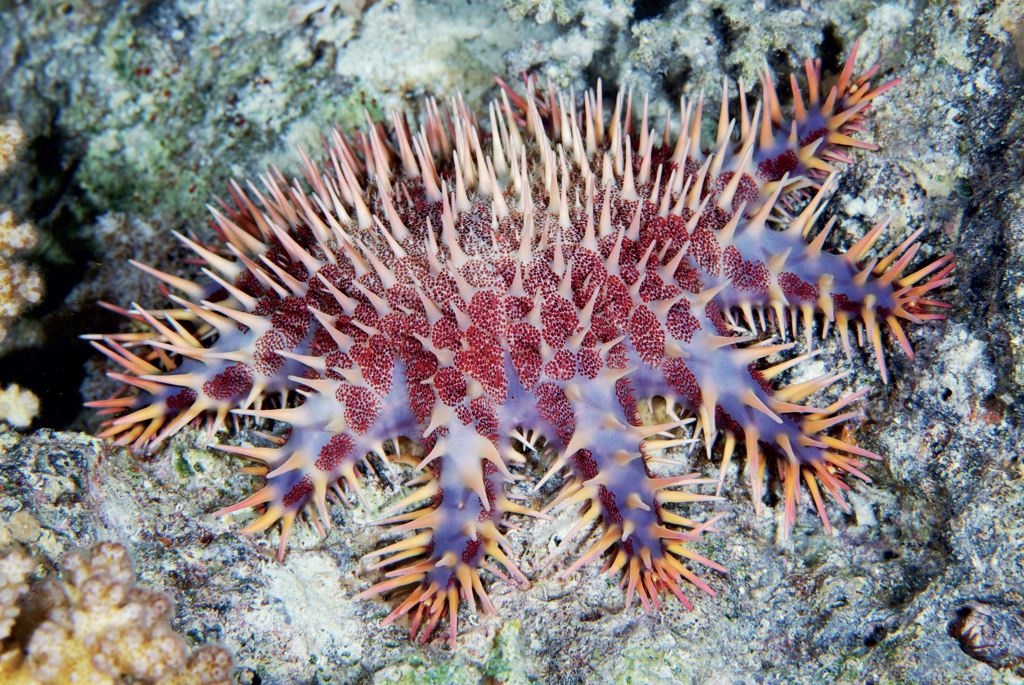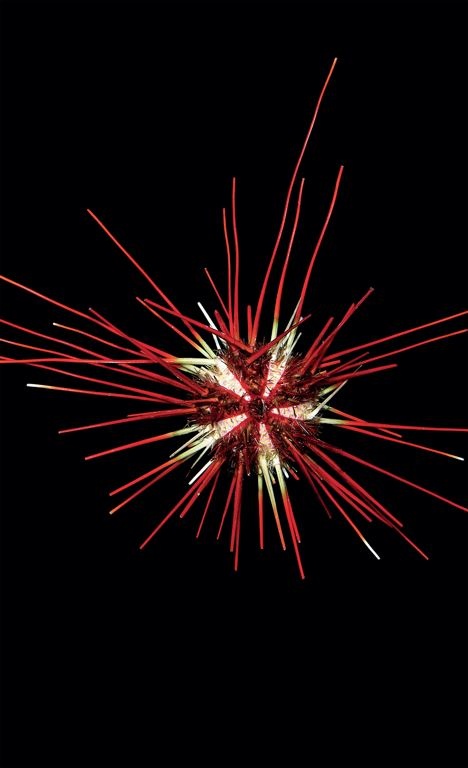 | Một con nhím biển với những chiếc gai màu đỏ. |