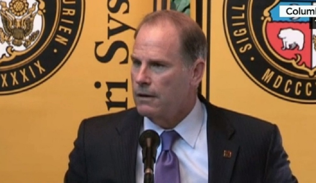 | Tim Wolfe tuyên bố từ chức hiệu trưởng vì căng thẳng chủng tộc tại Đại học Missouri. Ảnh: CNN. |