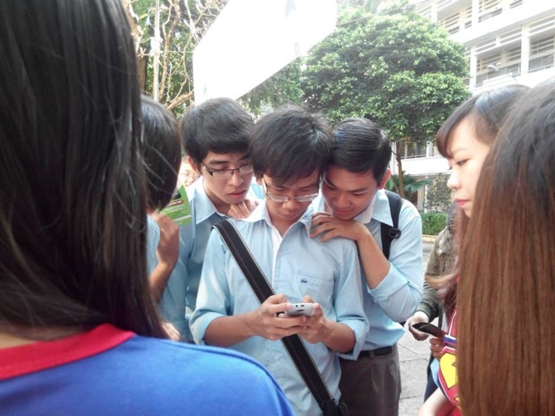 | Các nam sinh viên trường ĐH Sài Gòn mê mẩn với “siêu sao lướt web”. |